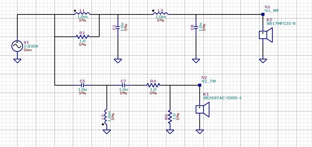 The crossover design has also been created in VituixCAD, using the on-axis SPL data curves from the measurements. This VituixCAD project is particularly useful for making adjustments to the crossover schematic when fine-tuning the speaker during the practical build.