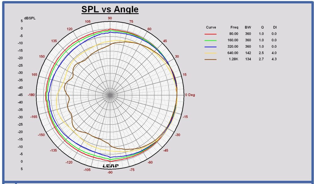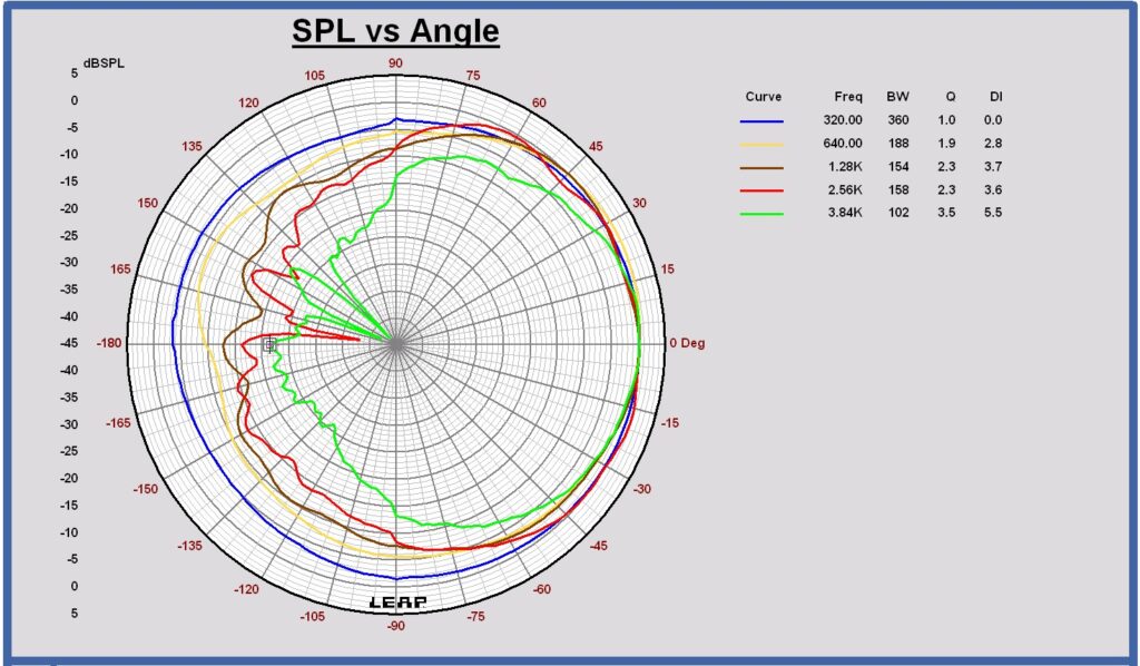 Horizontal polar diagram midrange Bliesma M74B-6 in cabinet in free space at 320 – 640 – 1280 – 2560 – 3840 Hz