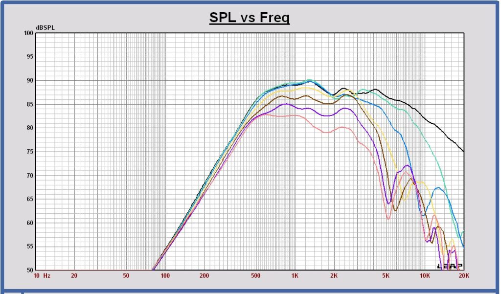 Vertical SPL off axis response of midrange Bliesma M74B-6 in the cabinet